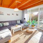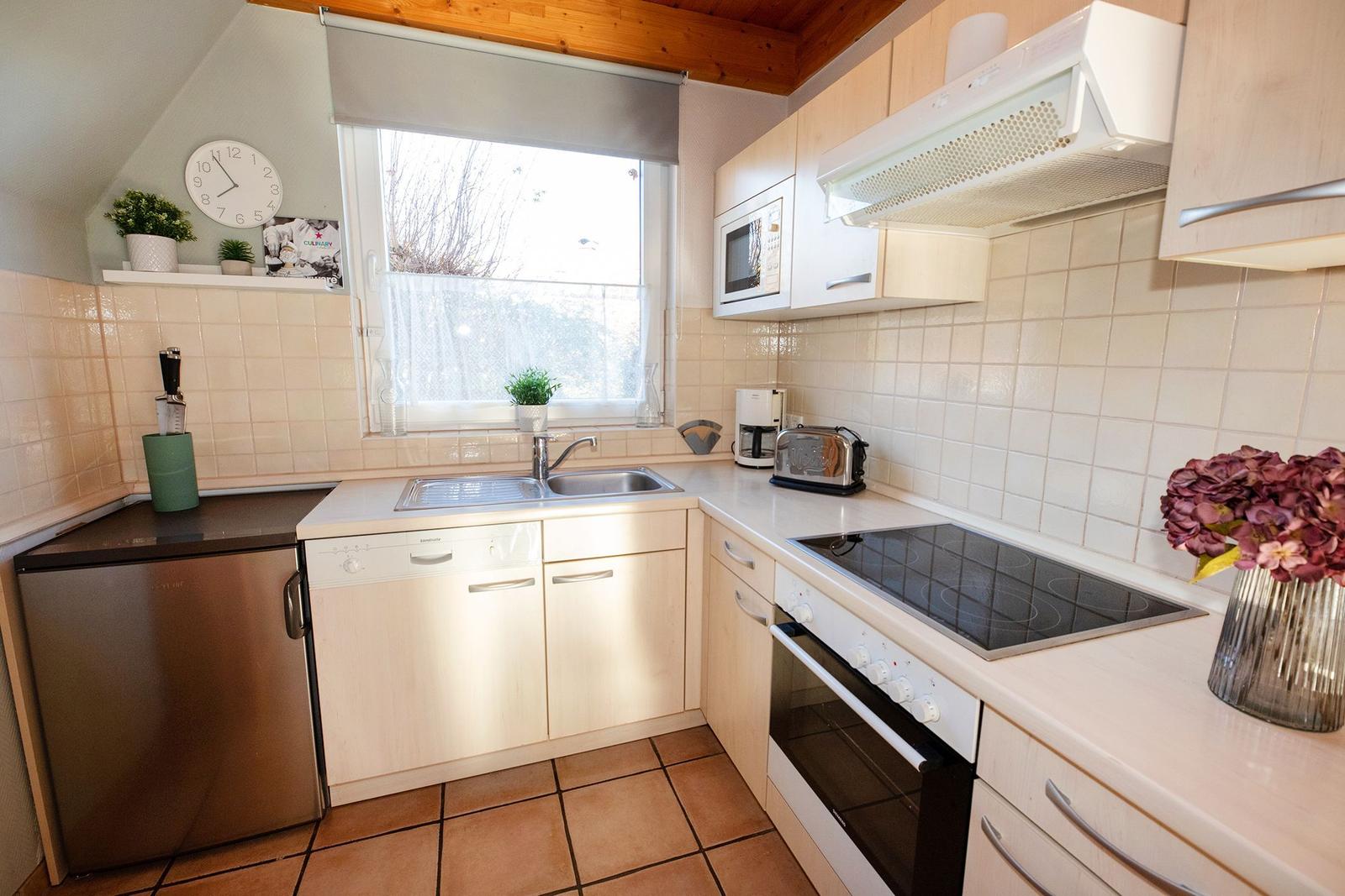 Diese stilvolle Ferienwohnung bietet Platz für bis zu vier Personen und ist ideal für Familien oder Gruppen. Die zwei Schlafzimmer verfügen über ein Doppelbett und zwei Einzelbetten, die für einen erholsamen Schlaf sorgen. Die offene Küche ist vollständig ausgestattet mit einem Geschirrspüler, Elektro- und Gasherd, Backofen, Mikrowelle und Kühlschrank, sodass das Kochen zum Vergnügen wird. Ein Essbereich mit Platz für alle lädt zu geselligen Runden ein. Das moderne Badezimmer mit Fenster verfügt über eine Duschbadewanne und Fußbodenheizung, während ein zusätzliches Gäste-WC den Komfort ergänzt. WLAN mit 100 MBit/s, eine HiFi-Anlage und ein TV sorgen für Unterhaltung. Für Familien stehen ein Kinderhochstuhl sowie Sicherheitsvorkehrungen wie Treppenschutz und Kindersicherungen bereit. Der Kamin verleiht der Wohnung eine gemütliche Atmosphäre, während der Parkplatz bequemen Zugang bietet. Die Wohnung ist allergikergeeignet und ausgestattet mit allem Notwendigen für einen entspannten Aufenthalt.