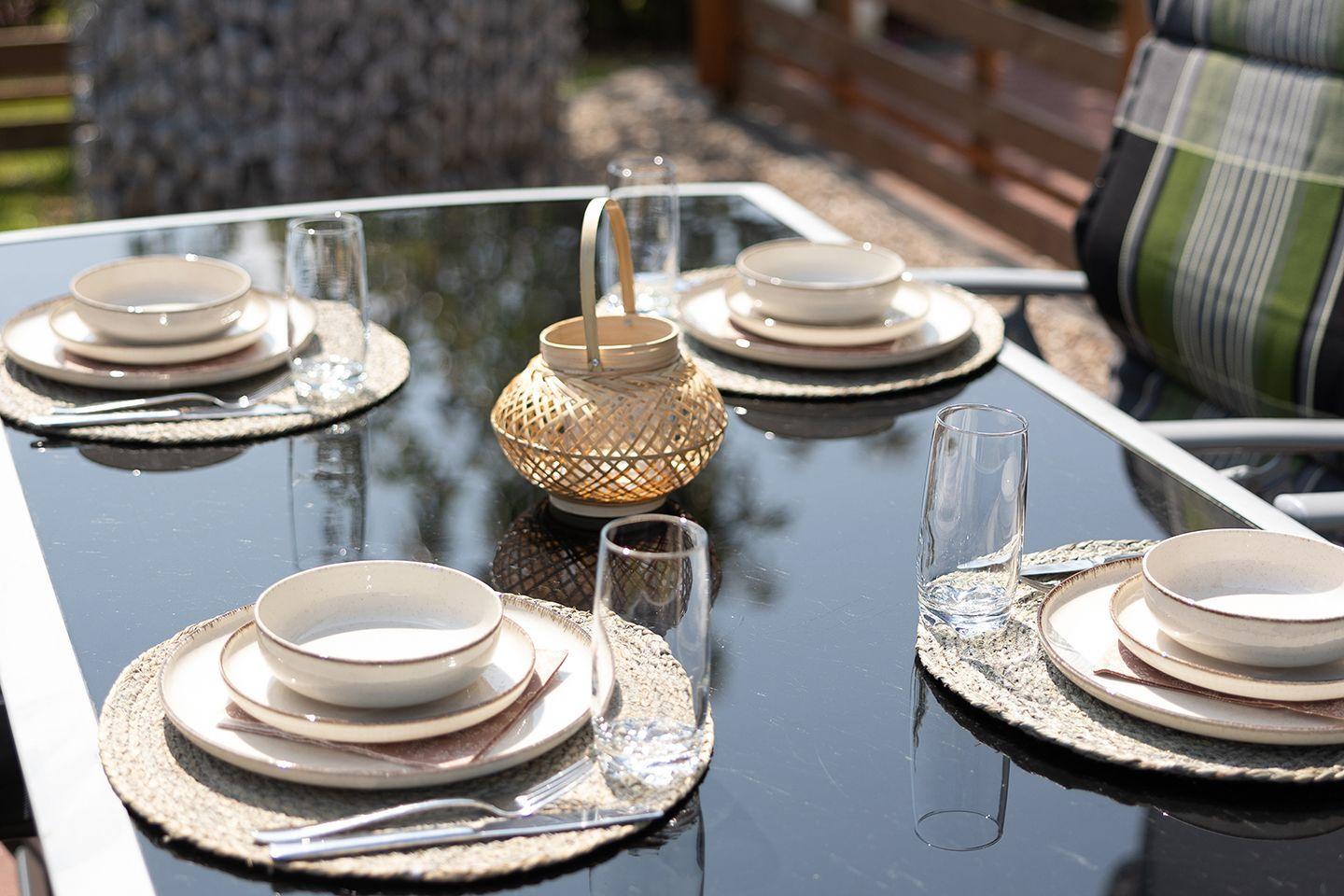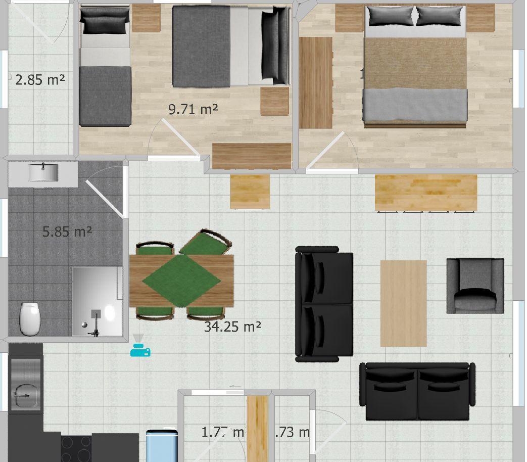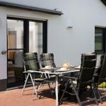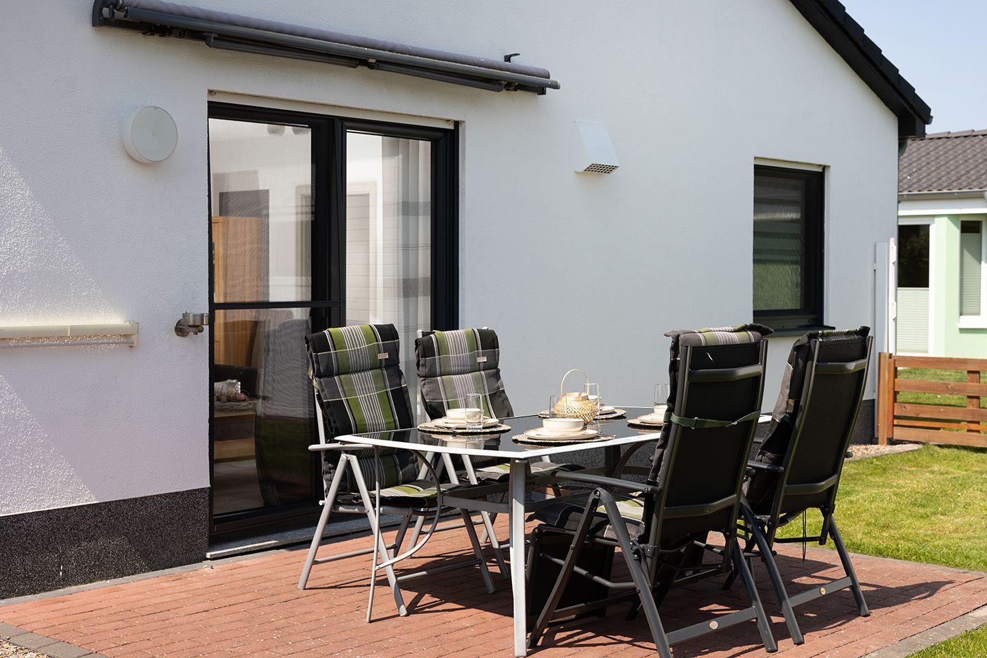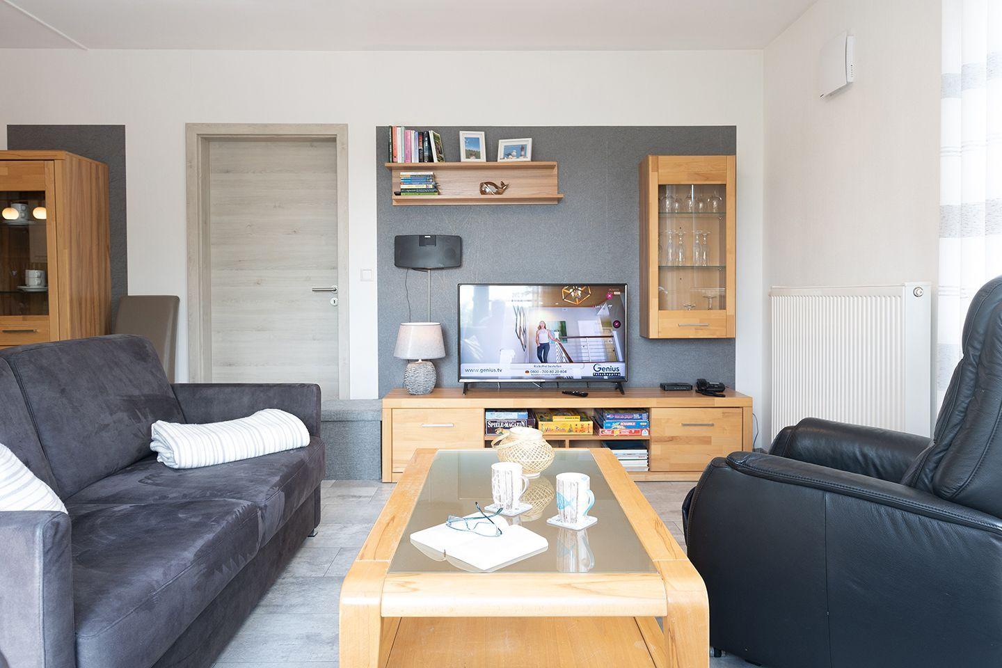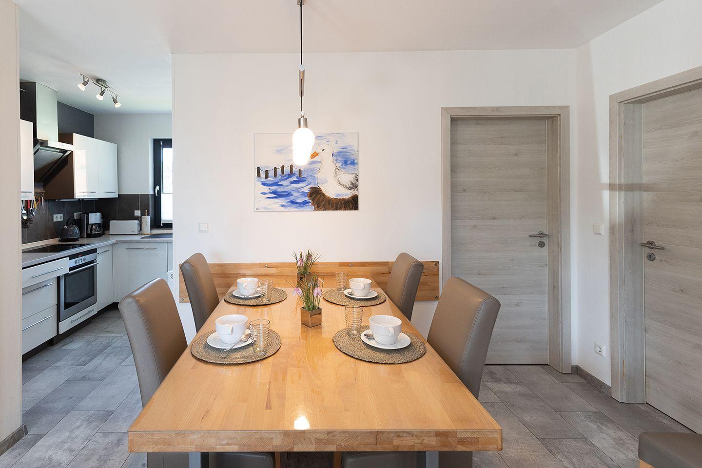 Die Ferienwohnung bietet eine komfortable Unterkunft mit zwei Schlafzimmern, ausgestattet mit einem Doppelbett und zwei Einzelbetten, ideal für Familien oder Gruppen. Die offene Küche verfügt über moderne Geräte, darunter einen Geschirrspüler, einen Elektro-/Gasherd, einen Backofen, eine Mikrowelle und einen Kühlschrank. Ein Esstisch lädt zum gemeinsamen Speisen ein. Für zusätzlichen Komfort sorgen WLAN mit 8 MBit/s, eine HiFi-Anlage und ein Fernseher. Das Badezimmer ist mit einem Fenster, einem Kosmetikspiegel und einem Haartrockner ausgestattet. Allergikerfreundliche Materialien und kindersichere Steckdosen garantieren eine sichere Umgebung. Weitere Annehmlichkeiten umfassen einen Parkplatz, Waschmaschine, Wäschetrockner und verschiedene Brettspiele für die Freizeitgestaltung. Fliegengitter und ein Sonnenschirm runden das Angebot ab und sorgen für eine angenehme Atmosphäre. Hier findet jeder die ideale Balance zwischen Entspannung und Komfort.