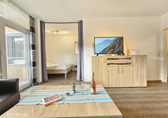 In dieser Ferienwohnung steht Ihnen ein Wohnraum mit einem Doppelbett 1,60mx2m und 1 Schlafraum mit einem Etagenbett zur Verfügung. Am Wohnraum befindet sich ein Balkon mit Sitzgelegenheit und Blick auf die Wiese. 1 TV und ein kostenloser WLAN-Hotspot steht in zur Verfügung. In der Küchenzeile finden Sie einen Backofen und Kühlschrank mit Gefrierfach. Das Badezimmer verfügt über Badewanne und ein WC. Es handelt sich um eine Nichtraucherwohnung. Parkmöglichkeiten stehen Ihnen am Haus kostenlos zur Verfügung.