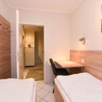 Die Ferienwohnung überzeugt durch eine durchdachte Raumaufteilung und eine umfangreiche Ausstattung. Das Schlafzimmer bietet zwei Einzelbetten, während das Wohnschlafzimmer mit einer gemütlichen Schlafcouch und einem Esstisch zum Verweilen einlädt. Eine offene Küche ausgestattet mit modernen Geräten, darunter Geschirrspüler, Elektro-/Gasherd, Backofen, Mikrowelle und Kühlschrank, ermöglicht die Zubereitung köstlicher Mahlzeiten. Zusätzliche Annehmlichkeiten wie eine Kaffeemaschine, Toaster und Eierkocher sind ebenfalls vorhanden. Das Badezimmer ist mit einer Dusche ausgestattet und bietet modernen Komfort. Die Wohnung ist allergikergeeignet und verfügt über WLAN, TV und eine HiFi-Anlage für entspannte Abende. Praktische Extras wie Waschmaschine, Wäschetrockner und ein Parkplatz runden das Angebot ab. Ein Fahrstuhl sorgt für einfachen Zugang zur Unterkunft. Diese Ferienwohnung ist ideal für einen erholsamen Aufenthalt.