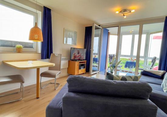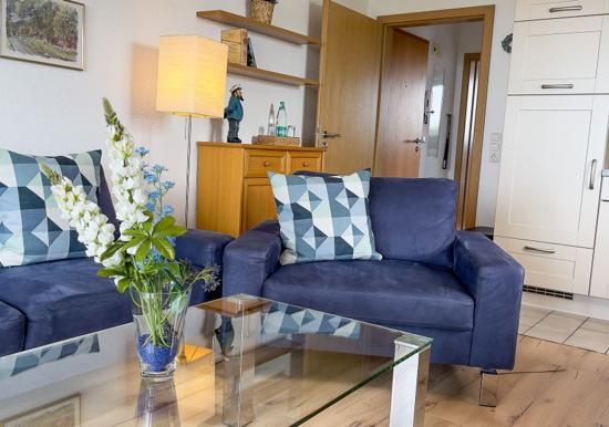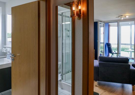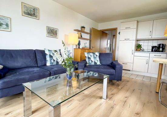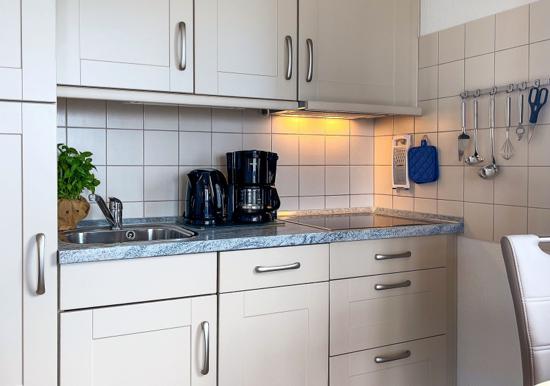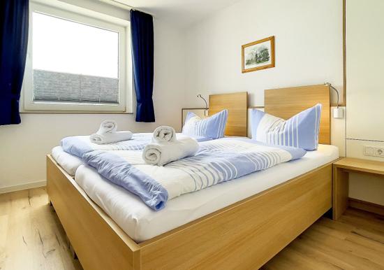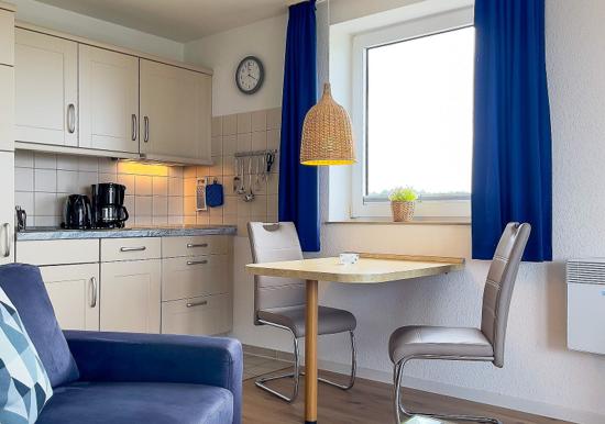 Die Ferienwohnung bietet eine komfortable und moderne Ausstattung, die für einen angenehmen Aufenthalt sorgt. Sie verfügt über zwei Schlafzimmer, darunter ein Doppelbett und ein Kinderbett, ideal für Familien. Die offene Küche ist mit einem Geschirrspüler, einem Elektro- und Gasherd, einem Backofen, Kühlschrank, Kaffeemaschine, Toaster und Wasserkocher ausgestattet. Ein Esstisch lädt zum gemeinsamen Speisen ein. Im Badezimmer erwartet eine bodengleiche Dusche sowie ein Haartrockner.