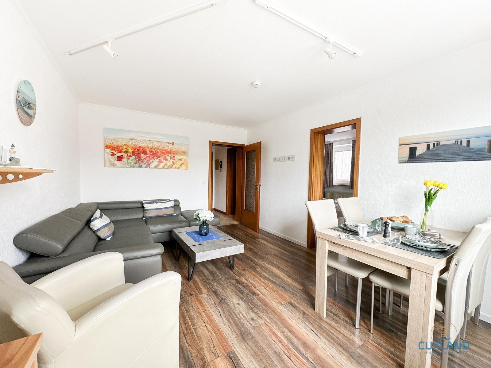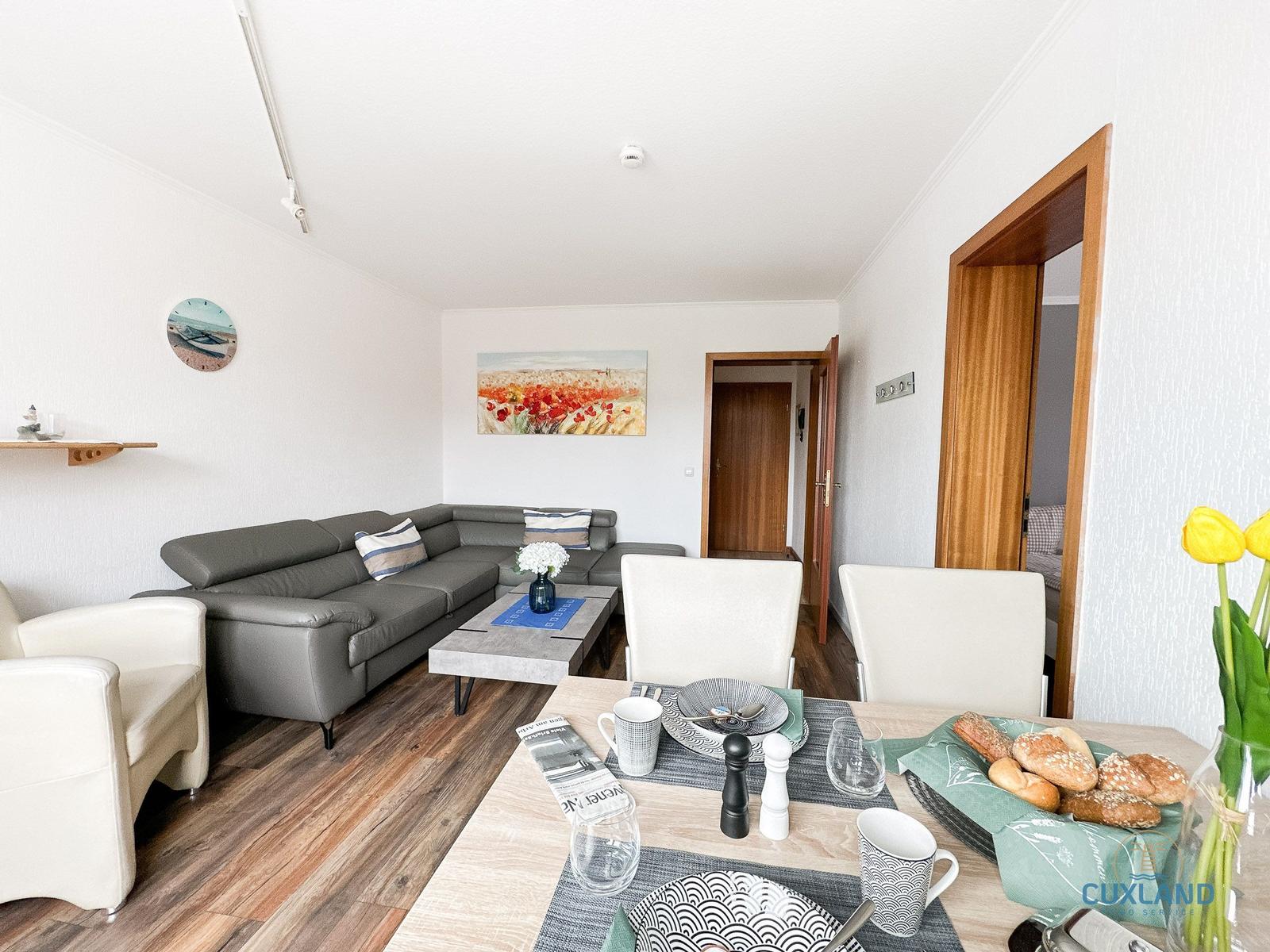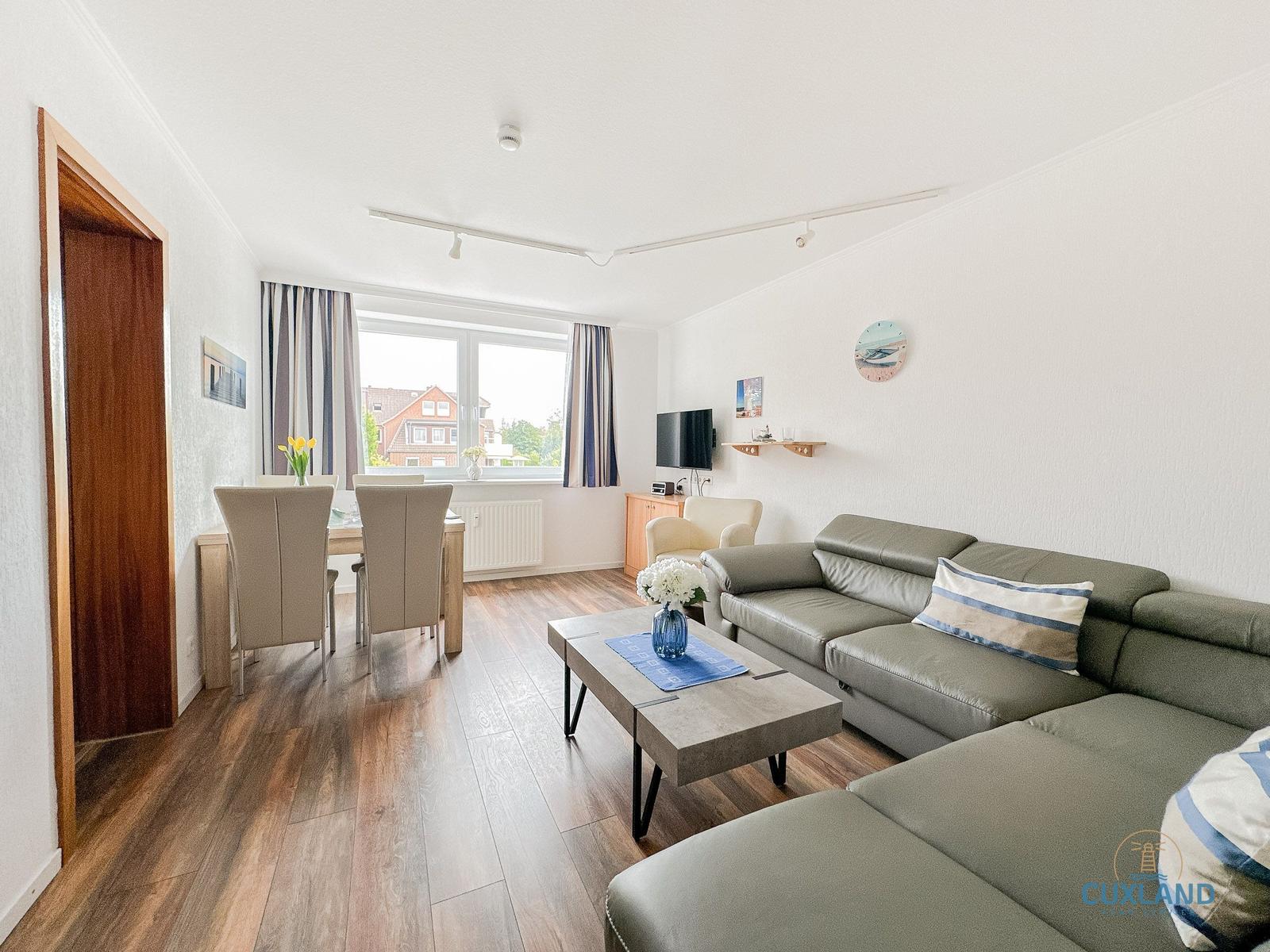 Gemeinschaftliche Freizeitmöglichkeiten sind in unmittelbarer Nähe vorhanden, da die Wohnung nur etwa 800 Meter vom schönen Döser Sandstrand entfernt liegt. Spaziergänge zu nahegelegenen Einkaufsmöglichkeiten, Bäckereien und Restaurants sind ebenfalls problemlos möglich. Die zentrale Lage, kombiniert mit einer schönen Außenfläche, ermöglicht einen unbeschwerten Urlaub in Strandnähe.
