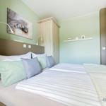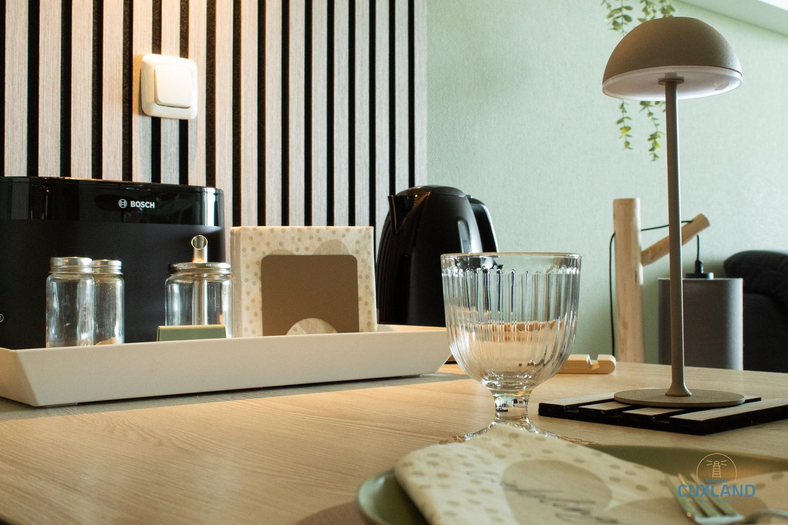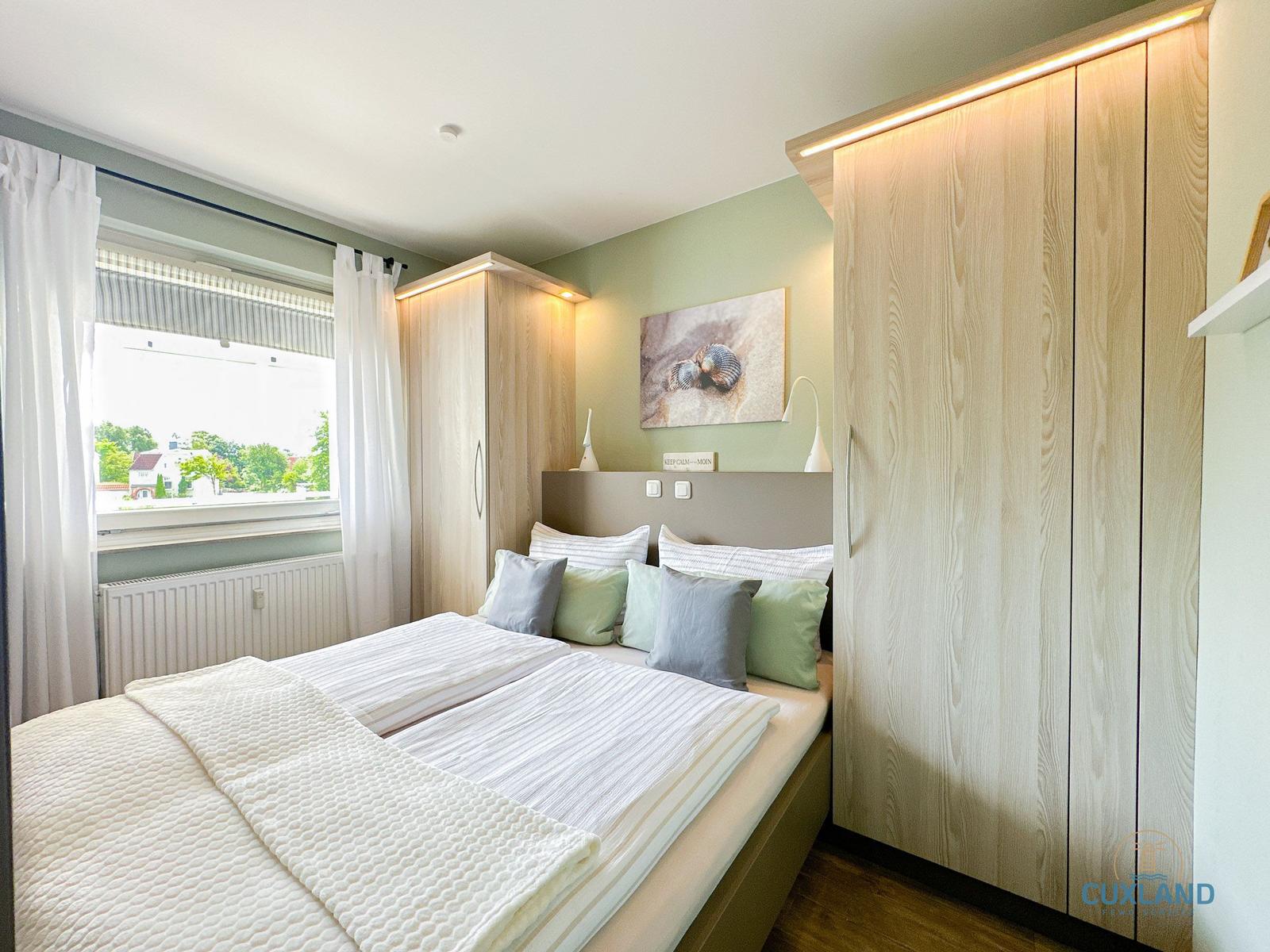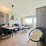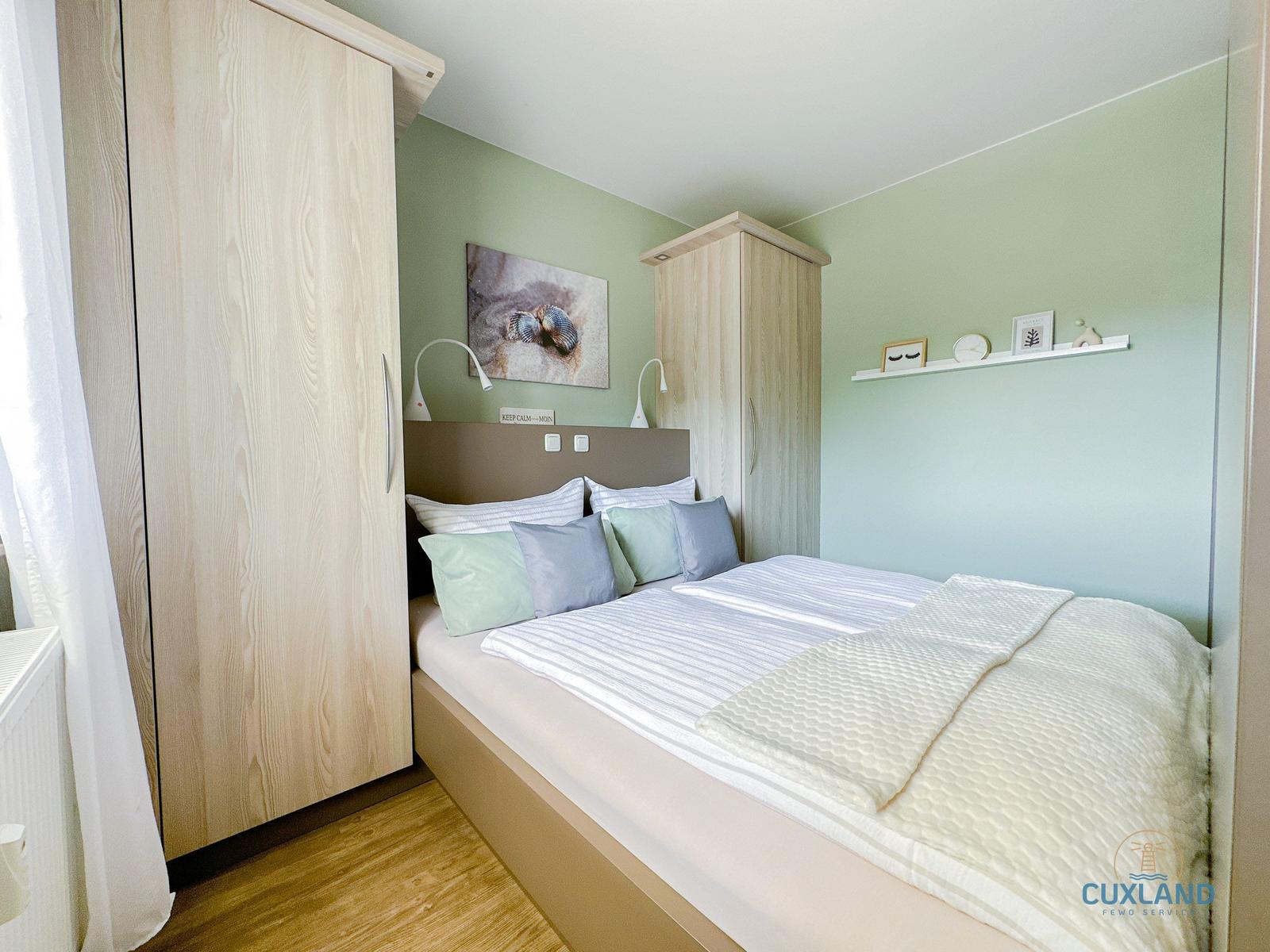 Die Ferienwohnung bietet eine moderne und komfortable Umgebung für einen erholsamen Aufenthalt. Sie verfügt über ein Schlafzimmer mit einem gemütlichen Doppelbett, das ideal für Paare geeignet ist. Die offene Küche ist mit hochwertigen Geräten ausgestattet, darunter ein Elektro-/Gasherd, Backofen, Geschirrspüler und Kühlschrank, um das Kochen zum Vergnügen zu machen.