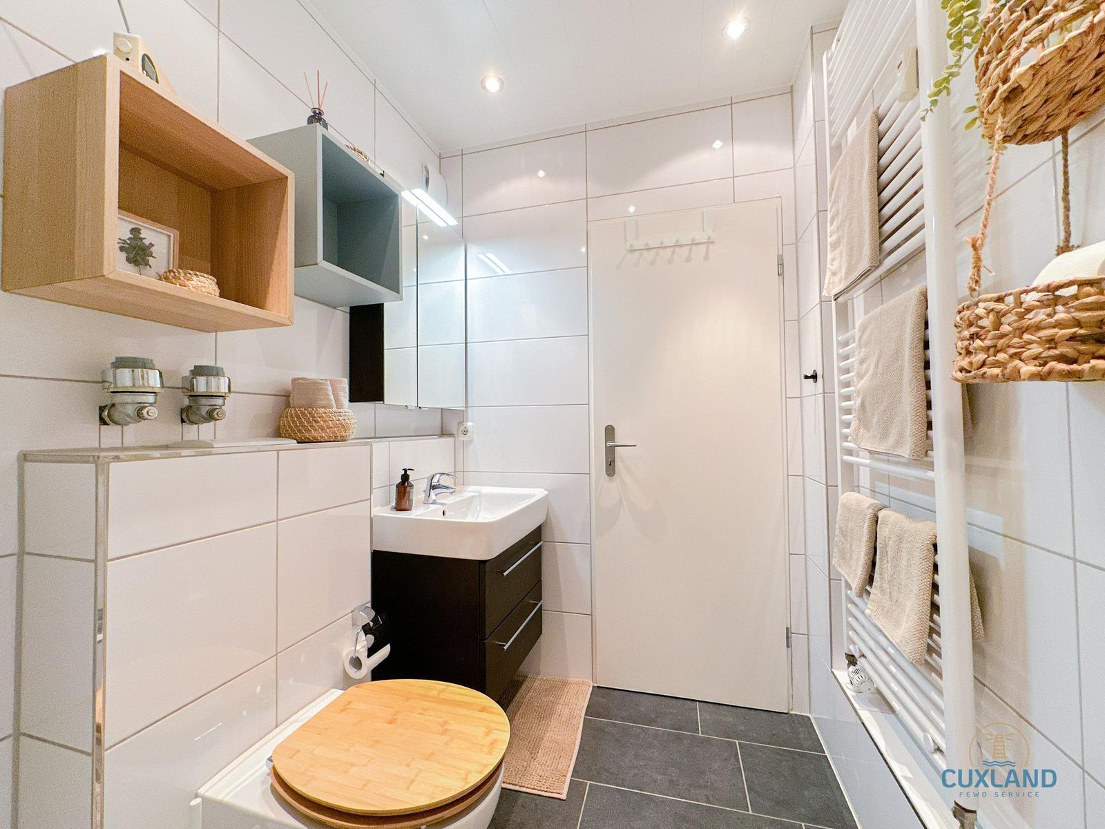 Das Duschbad ist mit einem Haartrockner ausgestattet und sorgt für zusätzlichen Komfort. Der Wohnbereich ist mit einem Sofa, einem Sessel und einem Esstisch eingerichtet, ideal für entspannte Abende. WLAN-Internet ist ebenfalls verfügbar. Die Wohnung ist allergikergeeignet und bietet zahlreiche Annehmlichkeiten wie eine HiFi-Anlage, TV, Waschmaschine und Wäschetrockner. Ein Parkplatz sowie ein Fahrstuhl sind vorhanden. Rauchmelder und ein Staubsauger sorgen für Sicherheit und Sauberkeit. Geschirr, Besteck und Geschirrtücher sind ebenfalls bereitgestellt, um den Aufenthalt so angenehm wie möglich zu gestalten.