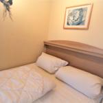 Im zusätzlichen kleinen Schlafzimmer/Schlafkoje (nicht begehbar) gibt es ein franz. Bett (140 x 200)
